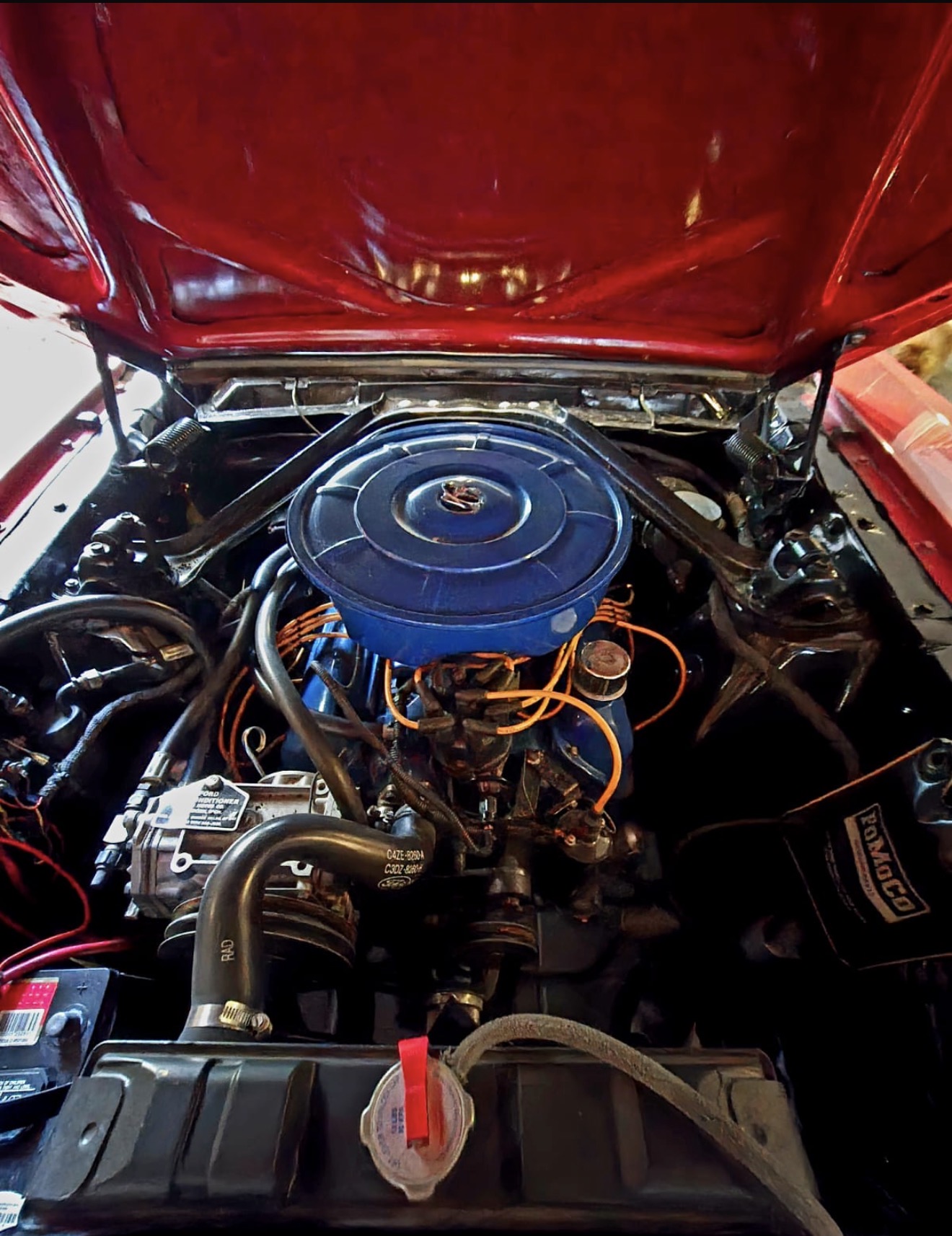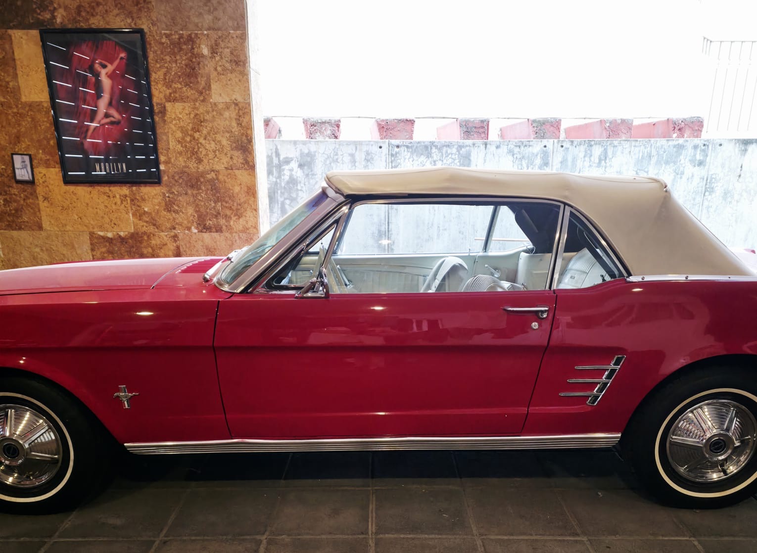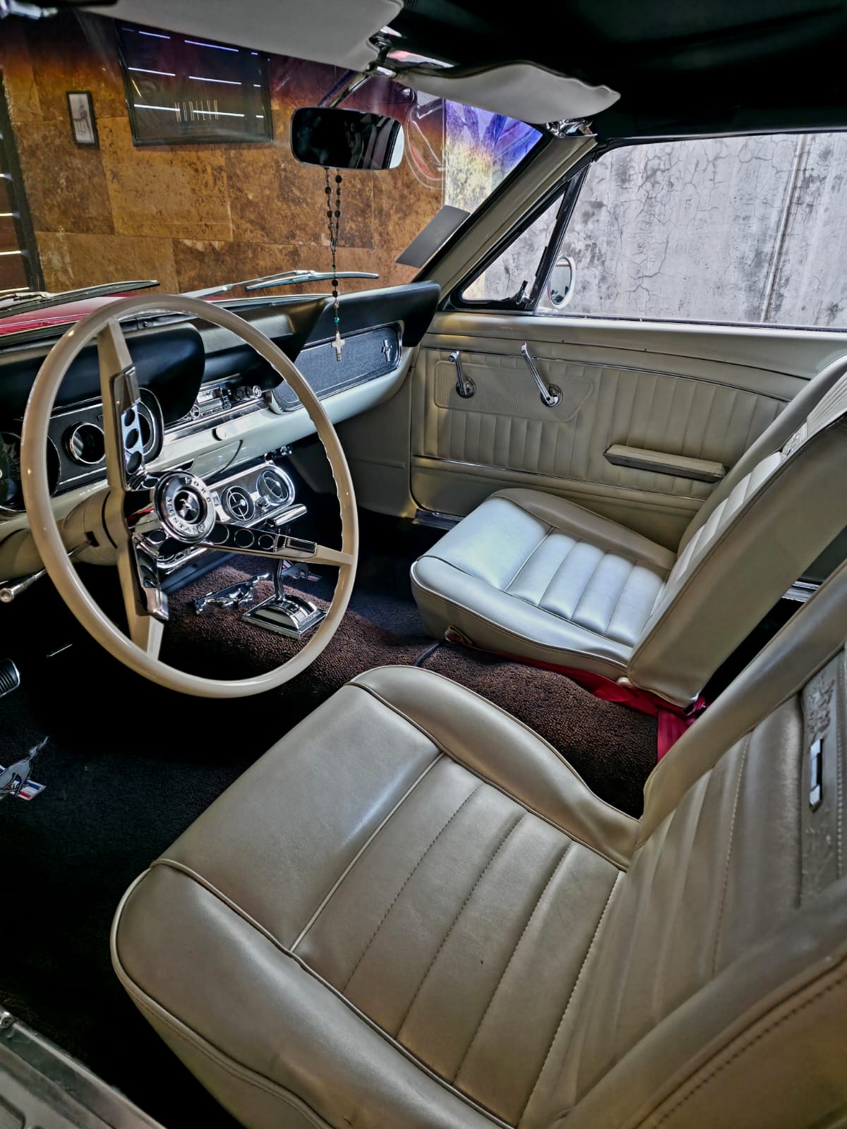 Otro de los integrantes más jóvenes del CMAA con su auto “El Apache” Ferran es el dueño de este Mustang 1966 convertible americano color rojo con interiores blancos completamente original.