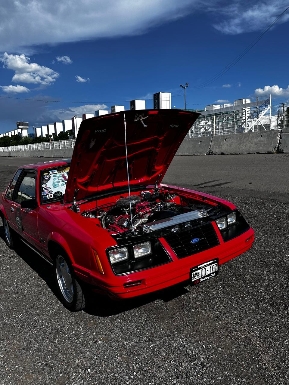 •Modelo Ford Mustang 1984 Nacional •Transmisión Manual de 4 velocidades •Motor 302 modificado con árbol de levas, cabezas forjadas, manifold, carburador Holley de 4 gargantas •Encendido electrónico •Suspensión reforzada •Headers •Resonadores Borla Propietario: Gustavo Martínez Bernal KR Mustang